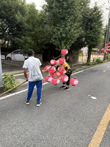雨が降ったり止んだりの中での作業でしたが、ちょうちんまつりを盛り上げるべく活動しました。